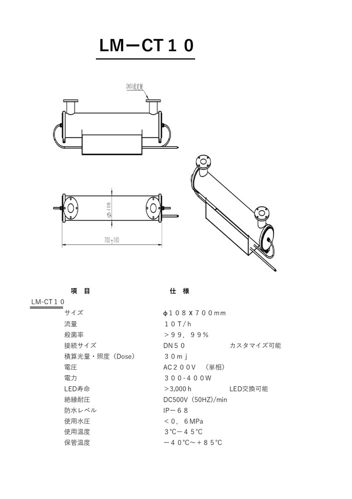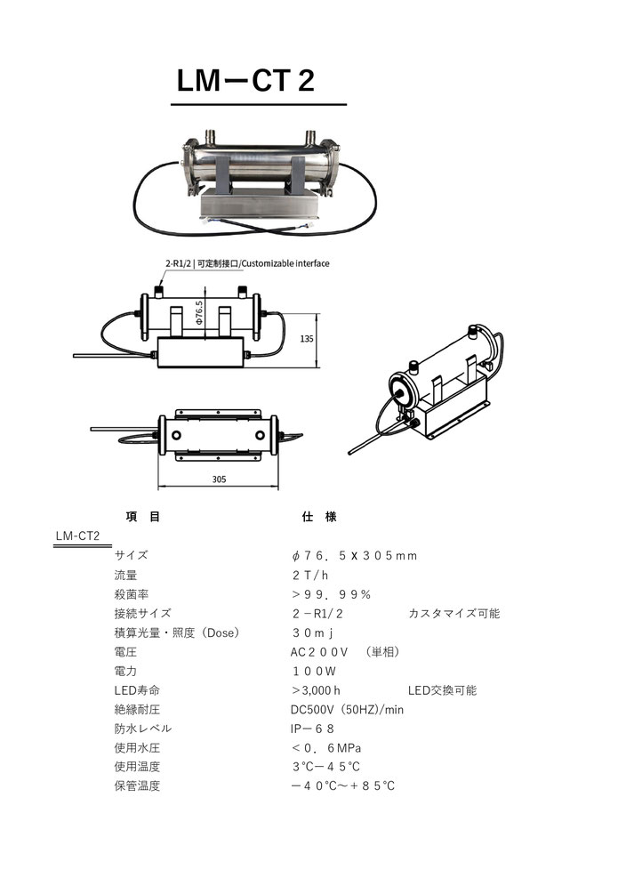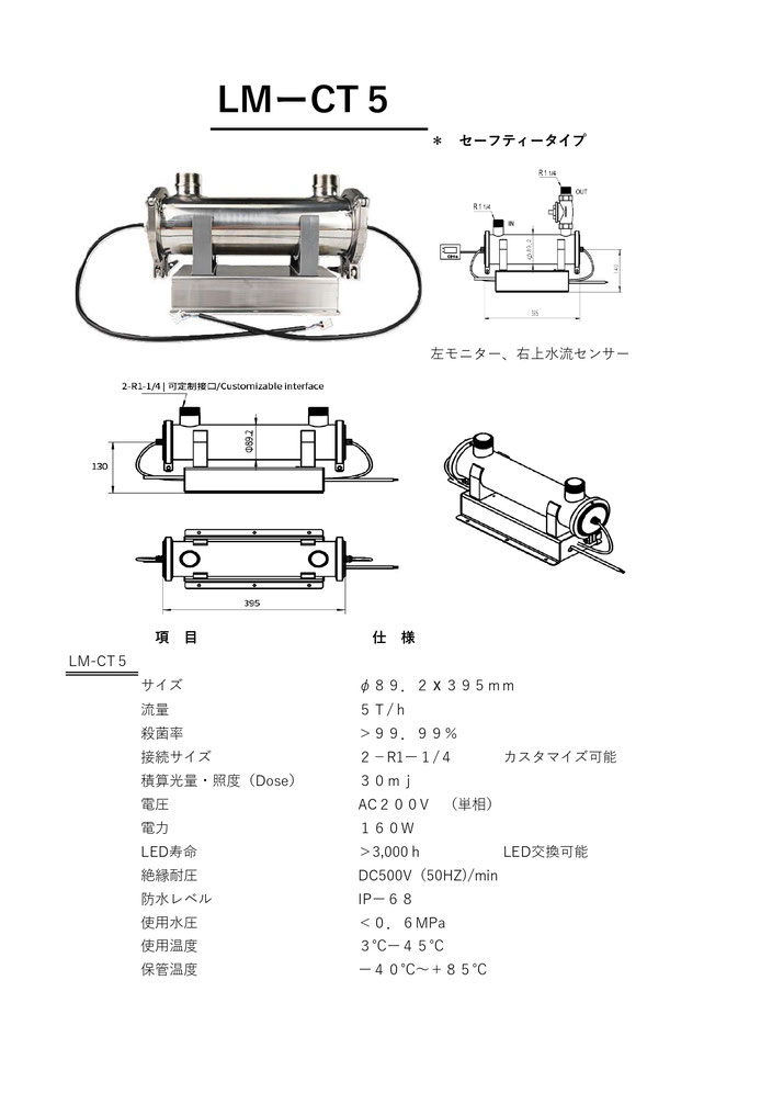 2,常に殺菌の強度が解るように、センサーを内部に搭載し外部接続のモニターで常に強度を表示 します。(この強度を見て、何処迄の殺菌をしたいのか?それにてLEDの交換時期が決められます)